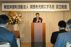 NPO法人「関西を元気にする会」は、関西経済の復興・活性化を目的として、ベンチャー精神溢れる関西の企業経営者同士が、経営についてお互いが学び合い、そして交流し合う場として設立された団体です。