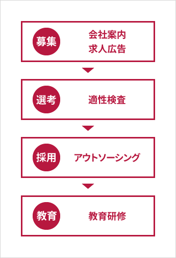 - リクルーティング事業では、人材採用広告のほか、人事・労務コンサルティング、教育研修、組織コンサルティング等も行っています。これにより、求人広告の取次ぎだけにとどまらず、採用計画の立案、育成、入社後のフォローなどお客様が抱える採用や人材育成に関する課題解決をトータルにご提案しています。