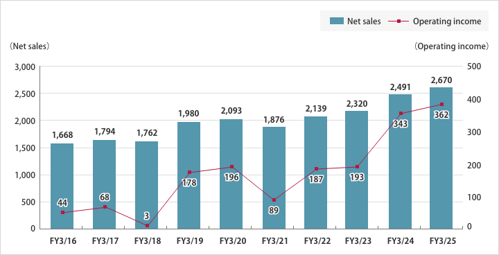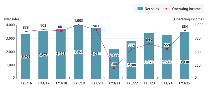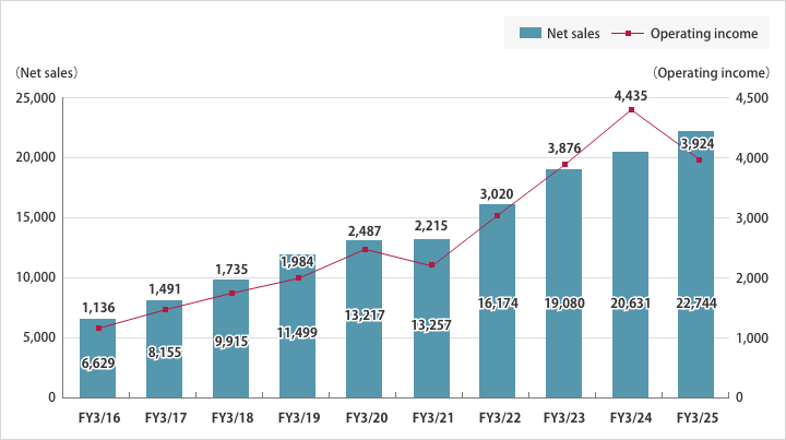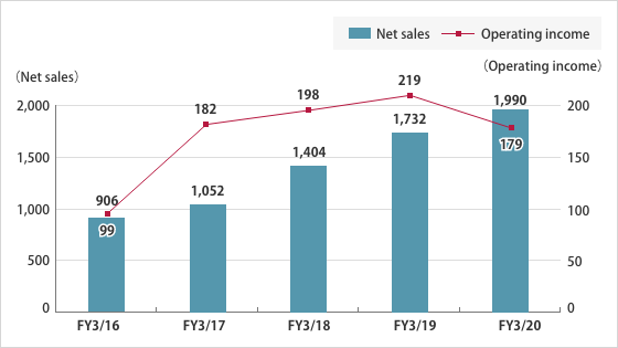 Note:1)Beginning with the first quarter of FY3/22, the Company has applied Accounting Standard for Revenue Recognition. All figures for FY3/21 have been adjusted retroactively to conform with this accounting standard.