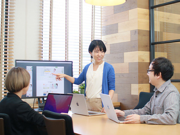 ユーザーに価値を届けるために、営業部門も巻き込んで体験づくりをすることもあります。最も比重が大きいのはWebですが、ユーザー体験全体から、Webや書籍、出版物のユーザーにとって理想的な形を模索し、デザインに落とし込んでいきます。プロジェクトによって進め方も様々ですが、サービスプランナーやマーケター、編集、エンジニアとのコミュニケーションを通してプロジェクトチーム一丸となって目的に取り組むので、デザイン以外の領域にも踏み込みながら、領域を広げたり、時には狭めたりといったことを柔軟に行えます。