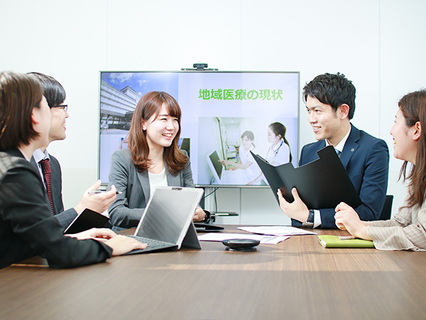- 医療看護領域の事業部に配属だと伺い、領域への知識もない私に務まるのだろうかと不安でした。でも、入社してみたら先輩のフォローがとても手厚く、わからないことは先輩に気軽に相談でき、ストレスなく仕事をキャッチアップすることができました。業界未経験なので不安、という方も気にせず挑戦してみてほしいです!
